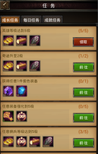 任务界面如下图所示,分别由成长任务、每日任务、成就任务三大部分组成。