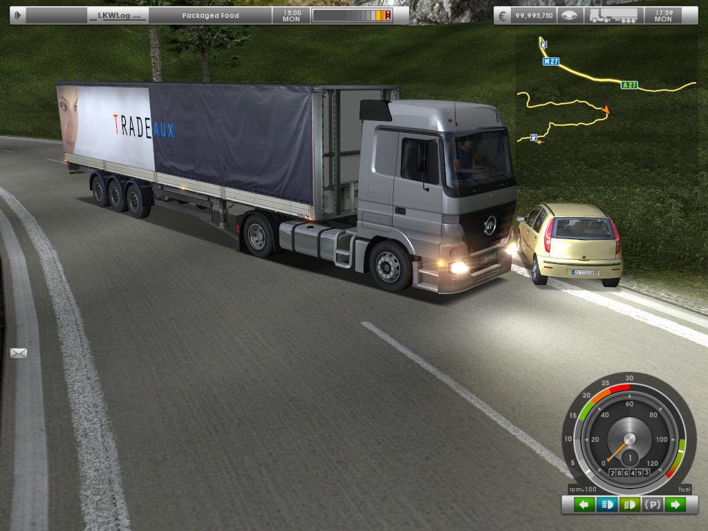 Scania(斯堪尼亚)R系列、奔驰Actros、MAN(猛狮)TGX、VOLVO(沃尔沃)FH15、雷诺马格农、DAF(达夫)XF灯光效果游戏里收录了7个厂商提供的21辆卡车供玩家选择,出现的卡车数量比《欧卡》多一倍,厂商包括Scania(斯堪尼亚)、奔驰、MAN(猛狮)、VOLVO(沃尔沃)、雷诺、DAF(达夫),每个厂商提供3个级别的卡车(A级、 B级、 C级)。由于游戏在德国得到MAN车厂的授权,因此原版游戏只有MAN的卡车有真实标志,其余的车厂没有授权。
