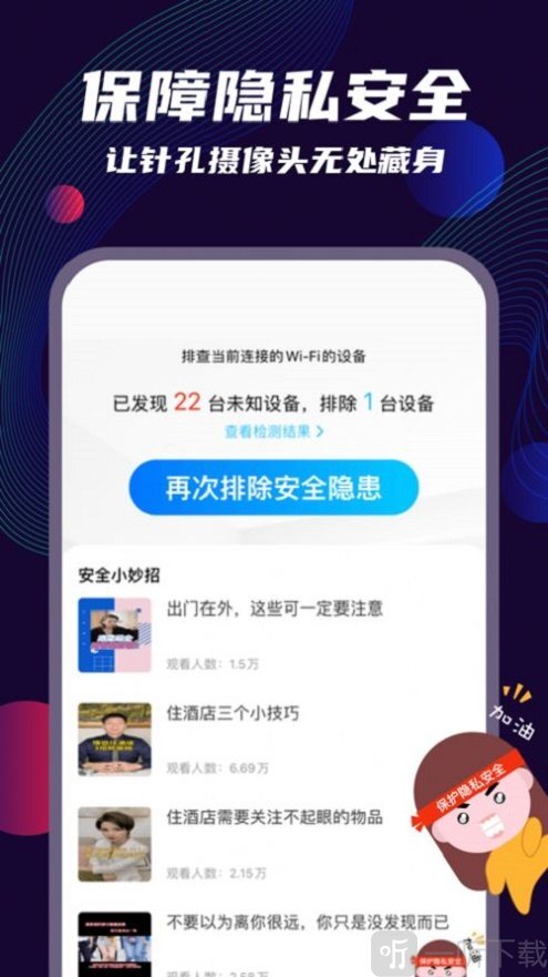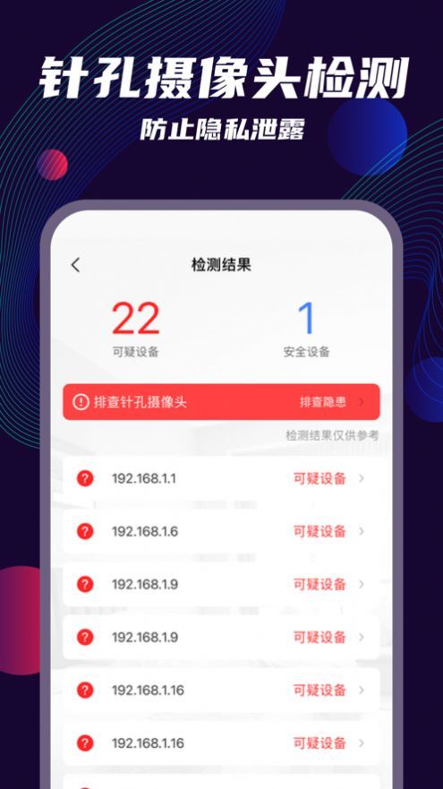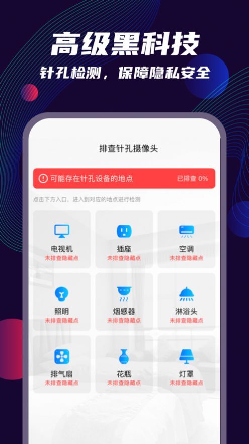 用户可迅速检测环境中的针孔摄像头,一旦发现,会即刻告知用户。此功能强大且操作简便,让每位用户外出入住时更安心,无需担忧遭偷拍。