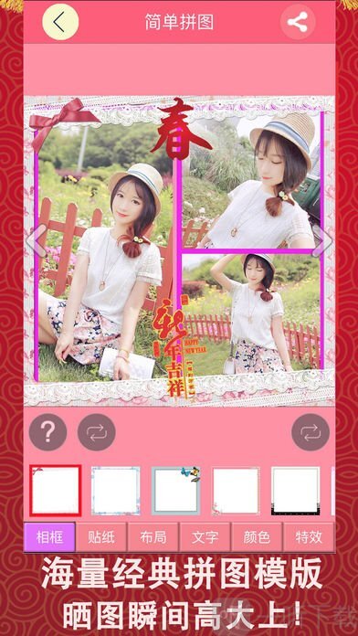 3. 创意拼接时,你还能选用杂志样式的拼接模板,彻底摆脱呆板的传统拼接方式。