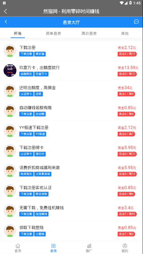 1. 众多平台的推广任务可供自由挑选,完成各类任务不仅能收获丰厚奖励,还能迅速赚取佣金!