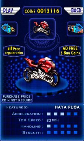 在城市柏油路上,你需要凭借速度击败对手。那里的道路上交通状况疯狂,那些充满速度与激情的对手正以优势向你发起挑战。你必须赢得比赛,占据主导地位。把对手远远甩在身后,才能宣告自己成为赢家。所以不要减速,利用氮气加速来战胜他。或许交通拥堵会迫使你降低速度,但可以使用安装在自行车上的导弹,一路披荆斩棘。