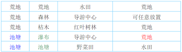 在如下位置放下枯木、水田(荒地让他荒,多2个草原也没多少资源)。