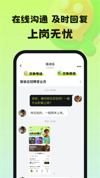 - 具备快捷的线上沟通功能,能便捷地与雇主或平台客服取得联系,及时处理问题,进而提升工作效率。