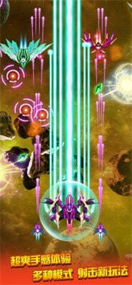 1. 操作流畅,空战射击画面炫酷,于广袤宇宙间尽情飞行射击。