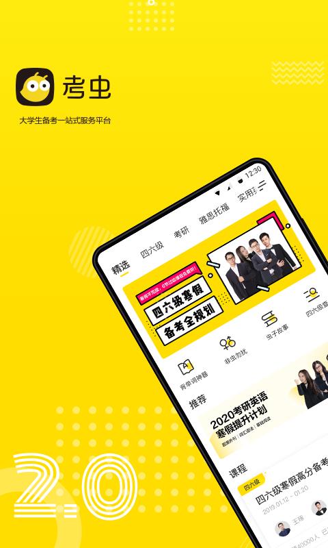 考虫是面向大学生的在线备考一站式服务系统,作为一款手机应用,它聚焦于大学英语四六级、考研英语、考研政治、雅思以及实用英语等课程,同时提供完善的学习配套资料。考虫具备在线模拟考试、随堂测试、能力评估等考试学习后的完整学习方案。如今,这款应用软件已在全国众多大学广泛使用。 此外,考虫英语拥有五大应用功能,分别为购买课程、无线回放、离线、单词PK。这五大功能各有其独特作用,能让你在学习过程中充满乐趣。考虫特色丰富,比如支持一键截屏,确保同学们不会错过任何一个知识点。为了能轻松应对考试,快拿起手机行动起来吧!