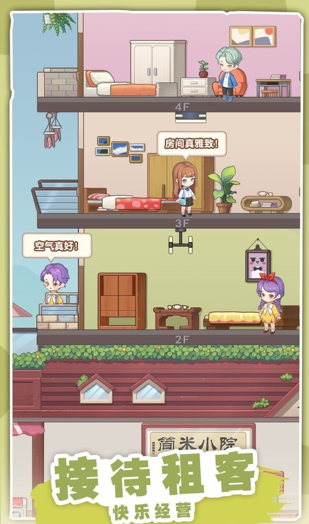 持续消耗金币来解锁更多的民宿设施,对床位进行升级,进而提高客户满意度。