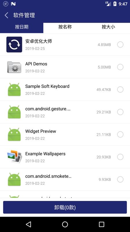 支持将软件按照名称和大小的方式进行展示;