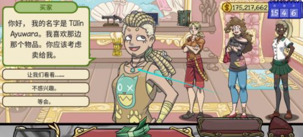 观察客户的数据很重要 贪婪指数以及是否是收藏家,这决定了是否能低买高卖,一般贪婪指数高的我是不会浪费时间开价的 一个物品最少要卖到估价x1.7以上才可以 遇到顶级凯子的时候可以拉到2-3倍,卖东西要有耐心 除非是急需钱回笼资金的情况下。