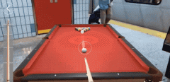 跳杆击球方式以直杆击球方式为基础,通过向母球施加充足力量,让母球在碰撞目标球后实现跳跃。运用跳杆击球,能够有效越过障碍球,增加进球几率。在进行跳杆击球时,球员必须精准把控跳杆的力度与方向,从而将目标球成功击入袋中。