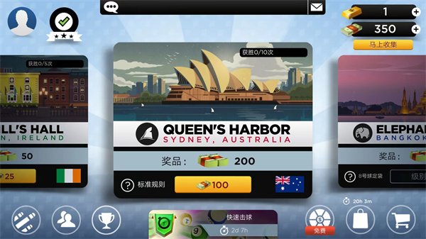 10、随着游戏进度的发展,我们可以挑战解锁不同的城市和级别,以上就是kings of pool苹果版本的玩法了。