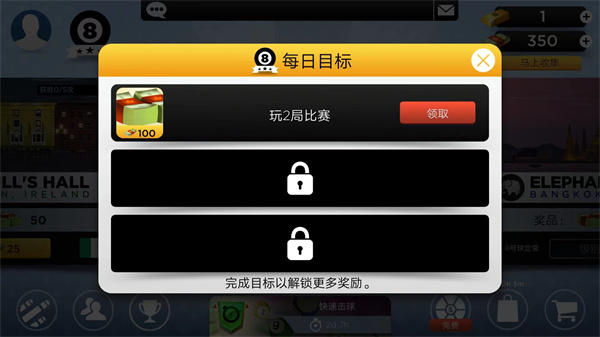 与技艺精湛的全球美式台球高手对决。击败他们,赢得专享的高筹码球桌使用权。提升你的奖金收入,成为游戏里最富有的台球玩家。