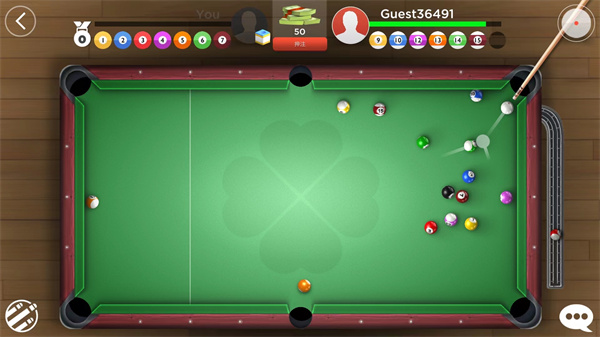 10、通过简单的手指点击和滑动完成对于球杆的控制,更好的找到最佳的角度击球。