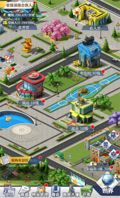 今天就来给大家介绍一下游戏中的商业经营系统,给各位合伙人铺好创业的第一条路。商业经营系统中包含饭店、电影院、超市等各种产业。