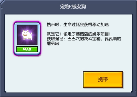 这是你的一只狗,携带时,能让你在生命值过低时加快移动速度。当你生命过低时一般需要什么,当然是逃跑了!那么这只拷皮狗无疑能增加你的生存几率,可爱的白色小狗在游戏中摇尾卖萌,铲屎官们注意啦!