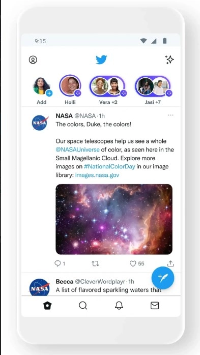 实时流:推文会以实时流的形式显示在用户的个人信息流中。