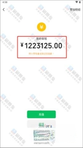 6、回到零钱页面,您能清晰看到充值后的状态,使用过程简单流畅,操作直观便捷。