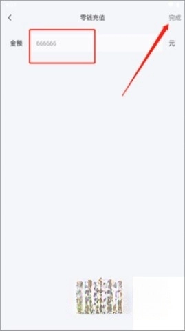 5、输入金额后点击右上角完成,您便可顺利充值,回到零钱页面时会看到成功的提示。