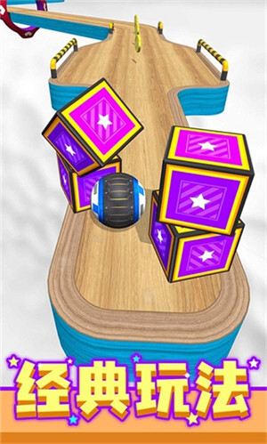 1. 当你进入游戏,要操控一个小球不断向前滚动,在滚动过程中避开形形色色的障碍物,同时尽可能多地获取道具奖励。