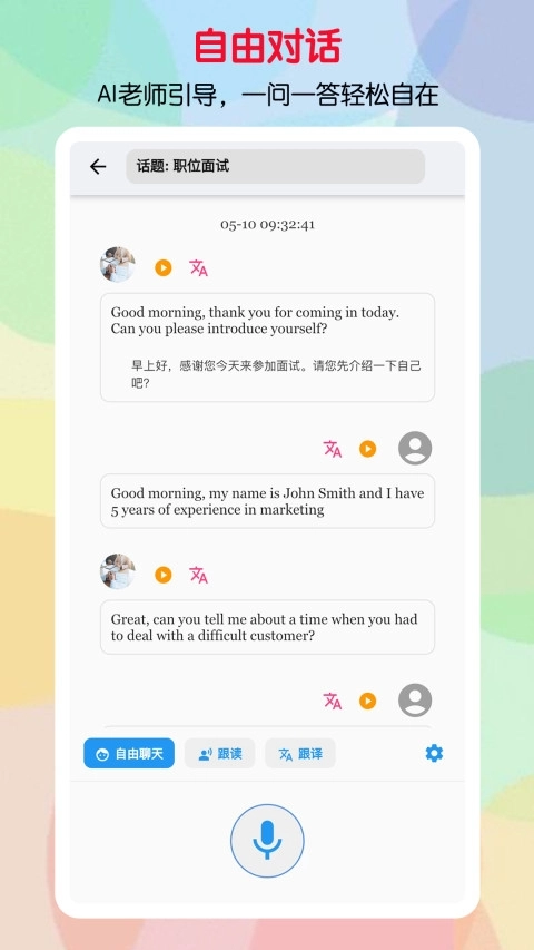 3、软件里的AI英语老师,不但具备出色的英语发音与语调,而且能够展开自然流畅的英语对话,并给出精准的发音指导。