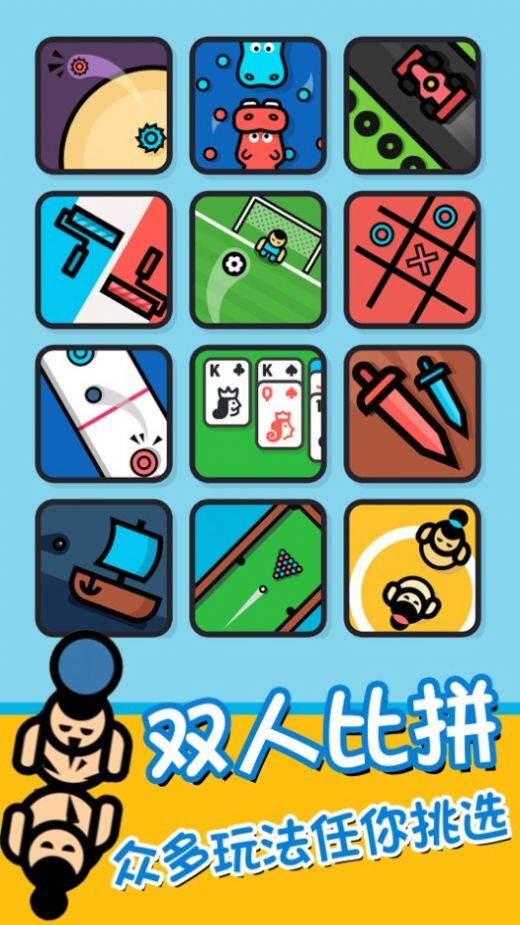 双人联机对战是一款互动娱乐游戏,支持双人联机对战。玩家可以邀请好友一同完成合作挑战任务,游戏还提供了十分丰富的互动小游戏。此游戏兼具竞技性与合作性,借助游戏内的匹配系统,能匹配到来自各地的玩家,共同在游戏中完成合作任务与对战任务。
