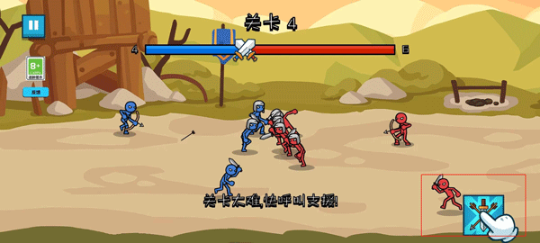 3、顺利通过关卡后,会开启新的火柴人兵种。