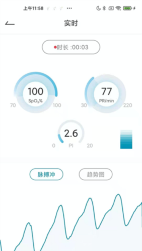 3、还能查看健康数据分析报告,其中包含脉搏冲及趋势图内容,使用方法简便,为用户的健康全力守护。