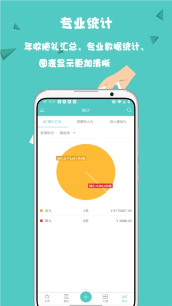 3、可视化统计:通过直观的图表形式,将人情收支数据进行汇总分析,收支情况一目了然,便于合理规划人情支出。