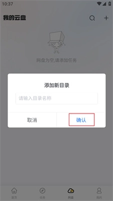 2、进入【网盘】板块,并点击右上角加号按钮。