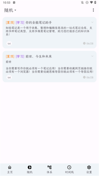 3、点击随机选项,将你的笔记内容进行打乱,在里面可以随机的查看更多的笔记内容;