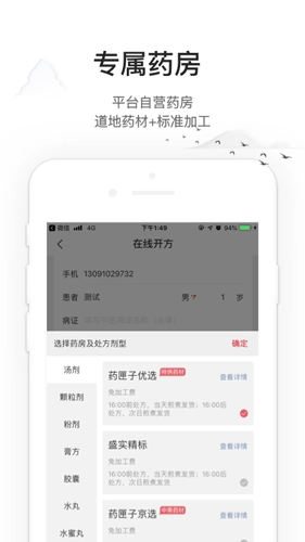 “拍照传方”能够智能生成处方图片,“电子开方”收录经方以及名老中医验方,借助字母检索查询,开处方轻松便捷。开中成药方面,涵盖百余种中成药,品类丰富齐全,只需输入相关信息即可快速成方。