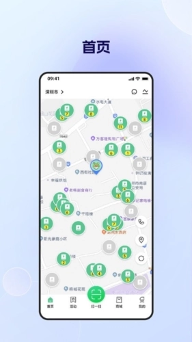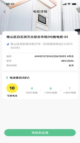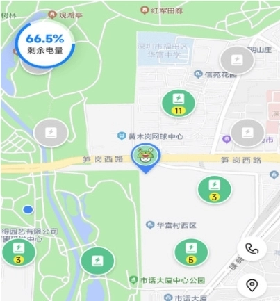 2、地图导航功能,显示电柜分布和电量情况,帮助用户快速定位最近的换电站。