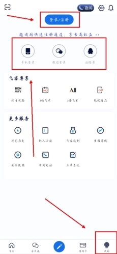 1、首先打开进入【我的】界面,选择要注册或者直接登录的方式;