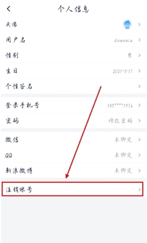 2、接着就选择并点击最下方的【注销账号】,跟着系统的引导一步步操作下来即可。