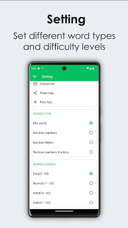 1、每个单词的长度皆随机而定,完全无法预知,这大大提升了游戏的挑战性。