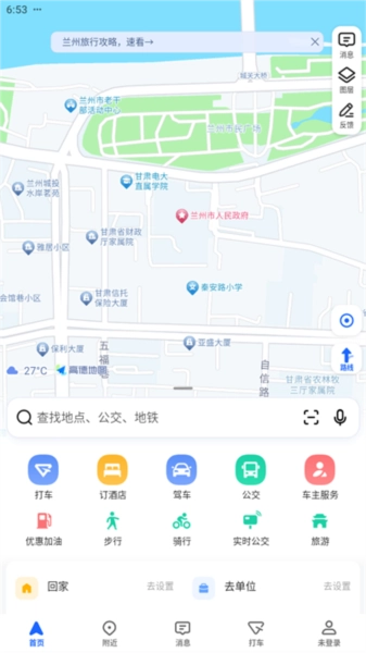 2、进入软件首页后可以查看自己的位置所在,点击搜索框可以搜索想要前往的地点,快速查询路线;