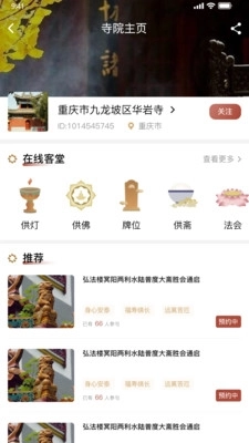 1. 采用生态化数字管理模式,支持在线查询各寺院信息,同时也可申请寺院入驻。