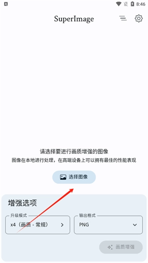 1、在SuperImage首页点击【选择图像】功能。