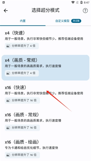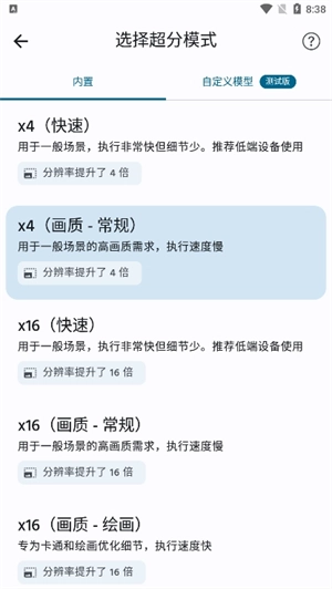 3、能够在x4(快速)、x4(画质 - 常规)、x16(快速)、x16(画质 - 常规)、x16(画质 - 绘画)之间自由进行切换。