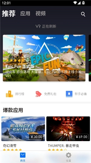 - 聚合优质内容,大量vr视频、3D影片、游戏应用。