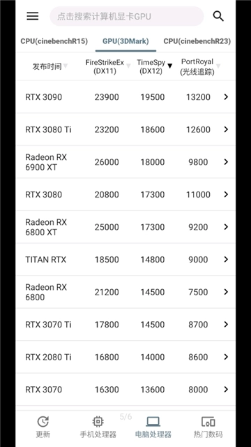 查看最新的手机CPU单核分、多核分、GPU分、总分。