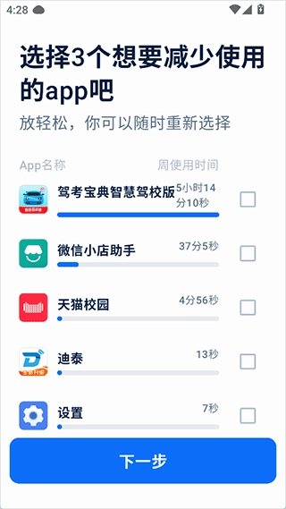 3、支持依据指定App来解锁更多使用时长。举例来说,当使用读书App、学习App之后,就能以轻松的心态去浏览社交媒体,不再感到焦虑。