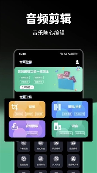 4、包含伴奏提取、音频裁剪、混音、降噪、变速变调等多种多样且全面的音频剪辑工具。