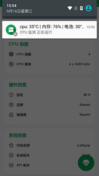 实时展示CPU的核心频率、负载、温度等关键数据,助力用户随时把控设备的性能状况。