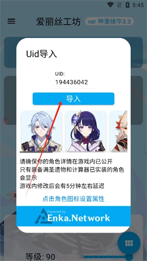 2、Enka.Network接入:直接导入游戏内的个人面板数据。