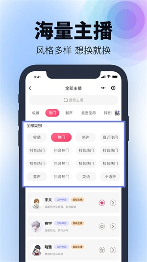 3、挑选心仪或适配的主播声音。