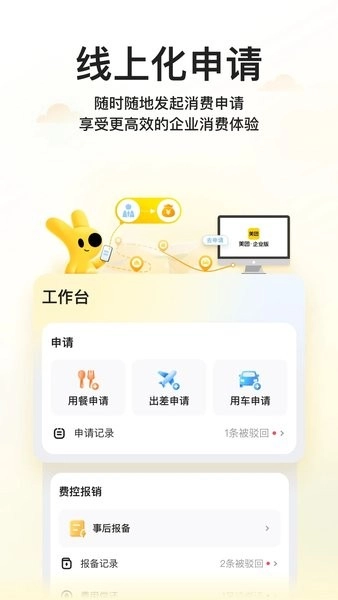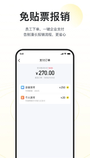 员工可在美团上直接订餐、订机票/酒店/火车票、打车