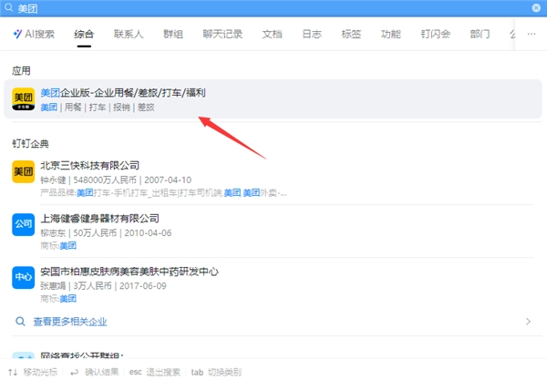 1. 点开你的钉钉,在搜索框里查找美团企业版。