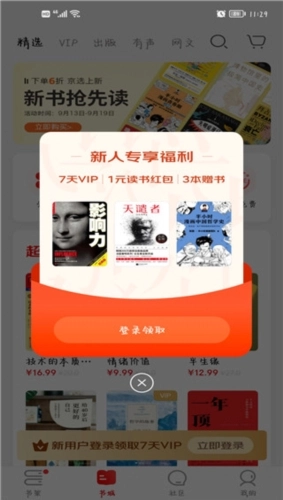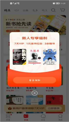 1、在本站下载并开启京东读书,进入首页,新用户能够领取专属福利。