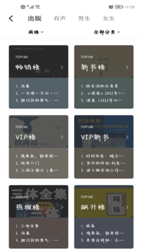 4、进入排行榜,用户可以看到各种热门排行,用户可以根据热度随意选择阅读。